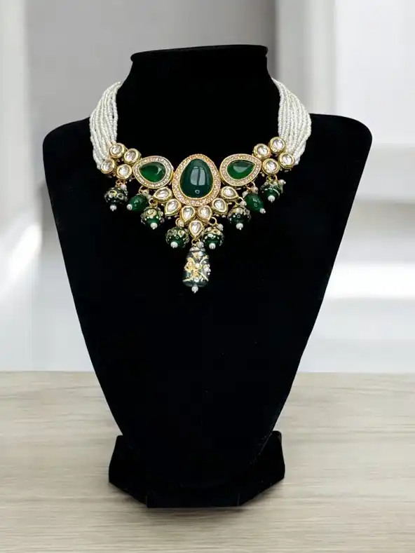 Explore the range of handcrafted necklaces from traditional Kundan necklaces to a contemporary AD/CZ necklace set. Buy the latest Indian necklace sets for women — perfect for every occasion!