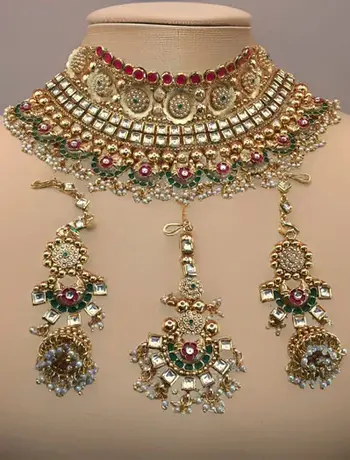 Perfect for wedding day and reception. Includes necklace, earrings and sometimes maang tikka or additional pieces.