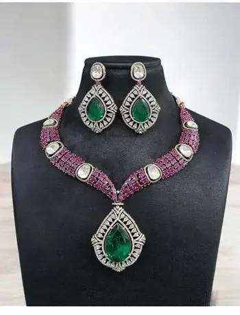 Choose simpler AD/CZ or Kundan jewelry so the look stays balanced. Even a Pachi Kundan Necklace Set or Kundan Pendant Set can work beautifully without overwhelming the outfit.