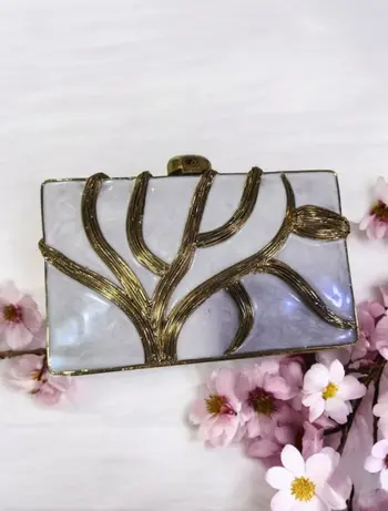 Metallic Tree Embellished Mother of Pearl Clutch |