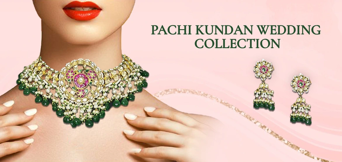 Similar, but Pachi Kundan incorporates glass stones, while Polki incorporates uncut natural diamonds. Pachi Kundan provides an identical appearance at a lower price.Pachi Kundan jewelry isn't just something to wear—it's a work of art that takes you back to India's rich heritage and can be a bride's best friend for several functions. You can choose bold choker or light pendants, our new Pachi Kundan collection is sure to impress. Go traditional with a twist this wedding season and let your jewelry speak for you. Discover our entire collection today and get the ideal necklace set to dazzle at your next party!