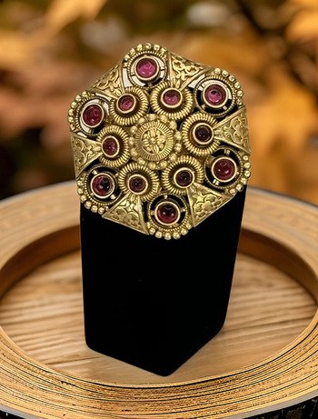 These Antique ruby rings speak for themselves as the classy and stylish appearance of the ring makes them suitable for any occasion. Without compromising on quality, this fancy ring is studded with premium AD/CZ stones and Ruby which adds elegance to it.