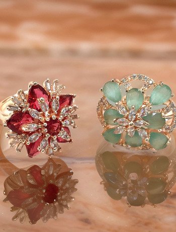 - Elegant Emerald Ring: Choose a truly elegant Ruby ring for your fingers because it is a must have fashion-statement ring. This fashionable ring is studded with Ruby AD and White CZ stones and made in silver. With a smooth finishing touch, these rings are available in ruby, mint green, and pink colors.