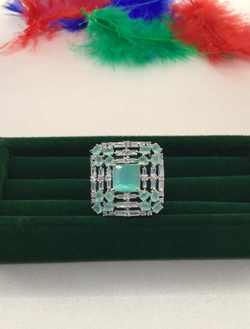 - Rose Gold Ring: Adorn the finger of your beloved with a charming square-shaped ring that exudes elegance and grace. It is featured with mint green AD stones and white CZ stones. These fashion-statement, cubic zirconia rings come with rose gold polish and smooth finish and design.
