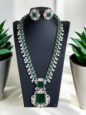 Nita Ambani Inspired Emerald Moissanite Necklace Set
