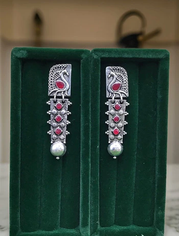 Oxidized Earrings are bold, contemporary statements that go well with Indo-Western styles, be it dhoti pants with a kurta or asymmetrical dresses. Indian Tribal Bohemian Style Silver Stud Earrings add freshness to the traditional elements.