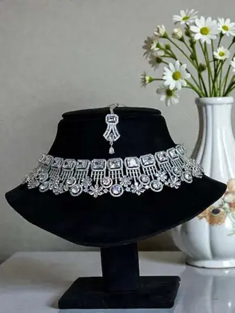 An AD CZ necklace set is designed for brilliance. Its diamond-like sparkle performs exceptionally well under artificial lighting, which is why it has become the top choice for receptions, cocktail nights, and evening celebrations.