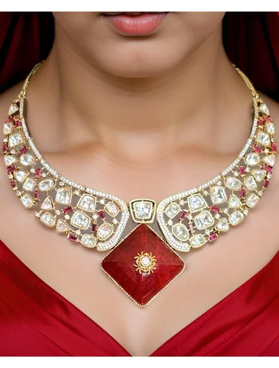 Unlike traditional jewelry, AD/CZ necklaces are lighter, flexible, and easier to style with modern silhouettes. They pair well with structured blouses, pre-draped sarees, and contemporary lehengas.