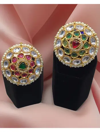 For weddings, we recommend going bold with Kundan rings or Polki rings. Looking for something royal and classic? Kundan is your best friend. Want a budget-friendly glam option? Go for our AD/CZ ring collection.