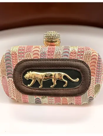 Sabyasachi Inspired The Royal Bengal Minaudière Croco Leather Clutch Bag