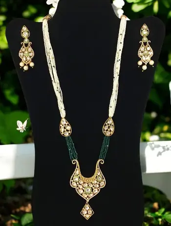 Do you like to make an entrance to stop conversations and start compliments? A Long Kundan Necklace Set is essentially a red carpet moment for your collarbone. If it's a wedding, a Diwali celebration, or simply your weekly "slay brunch," this set provides elongated sophistication and old-world charm — like Jodhaa Akbar, but make it haute couture.