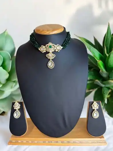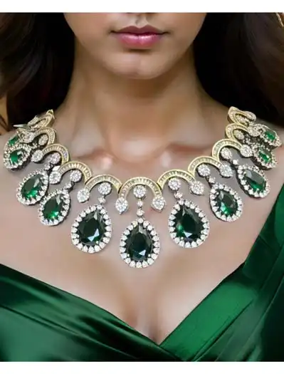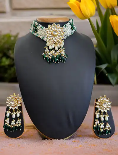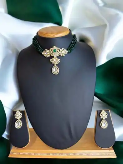 Exquisite Emerald Moissanite Polki Kundan Necklace Set