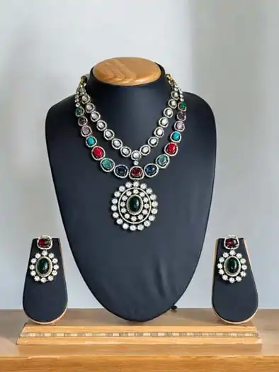 Bollywood Inspired Moissanite Kundan Necklace Set