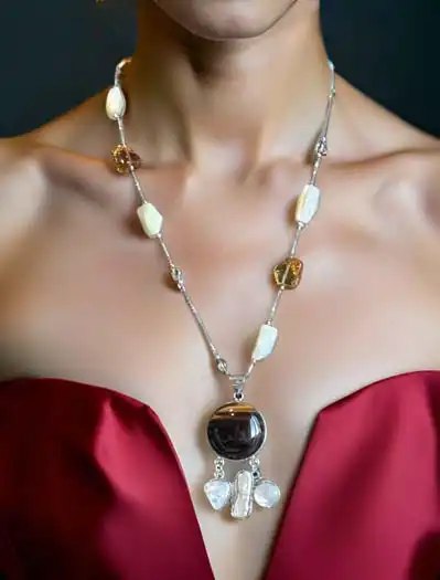 Natural Labrodorite Freshwater Pearls Necklace Set