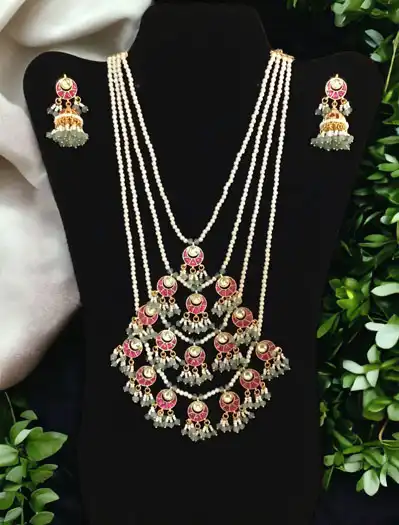 Four Layer Pearl Beaded Pachi Kundan Necklace Set
