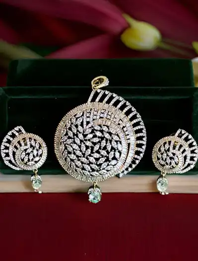 Bollywood Inspired Oblong shaped designer AD/CZ Pendant Set