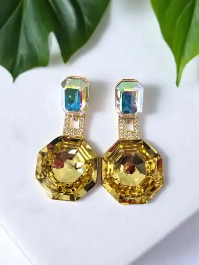 - Swarovski Drop Earrings- Drop earrings are a visual symphony. They dangle, they sparkle, they dramatize. Yashti's collection embodies this in the guise of the Teardrop Dangle Swarovski Earrings and Deep Color Hexagon Swarovski Drop Earrings. Ideal for evening dates, wedding parties, or cocktail parties, these earrings are anything but run-of-the-mill. The classic drop shape stretches the neck, introducing sophistication and mystery. Each pair is like a crescendo, a crescendo of glamour giving way to subtle sparkle.