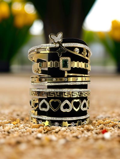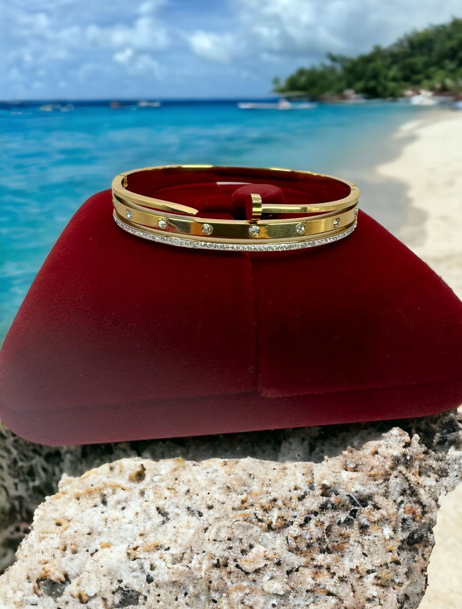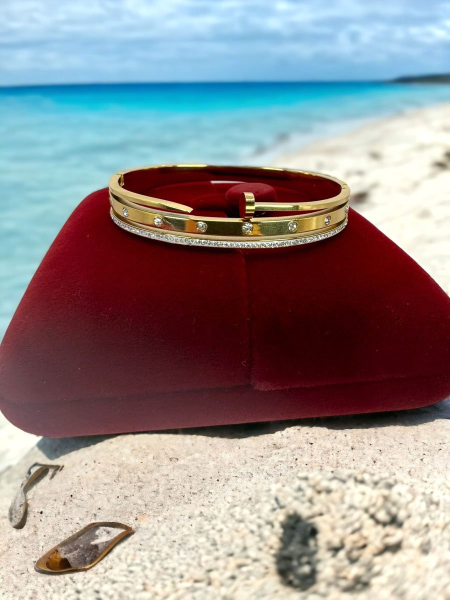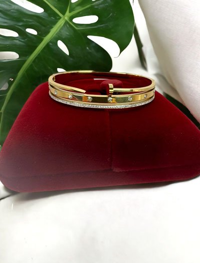 Anti Tarnish Studded Cuff Nail Design 18k Gold Polish Bracelet