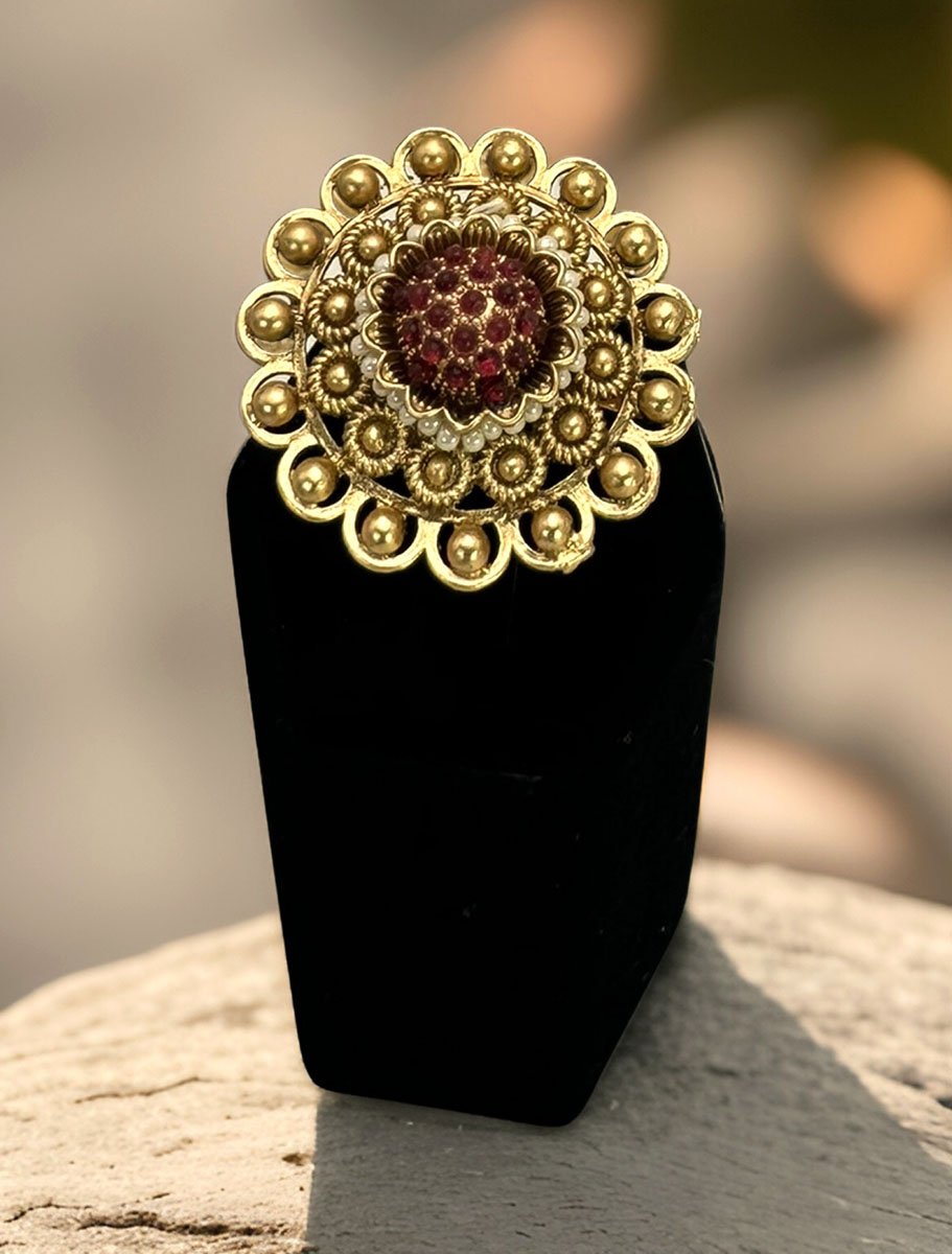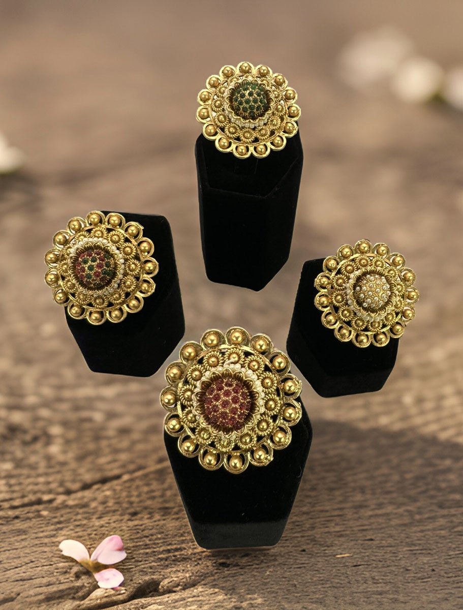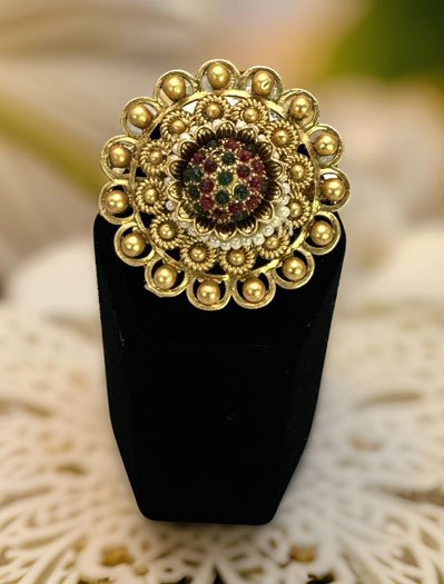 Explore the latest additions to our Jewelry line – the Fancy Designer Brass Antique Gold Plated Rajwadi Kundan Broad Finger Ring (Adjustable size). Brass Ring is a perfect choice for birthdays, anniversaries, or any special occasion. Share the joy of timeless elegance and add a touch of sophistication to your jewelry collection!