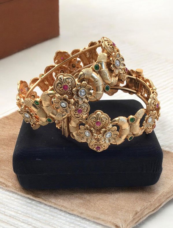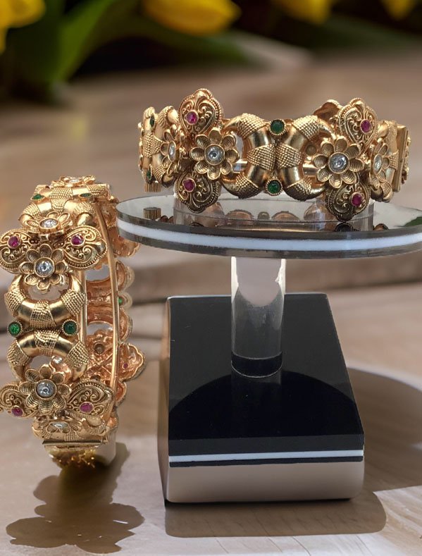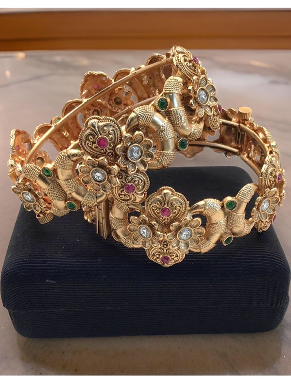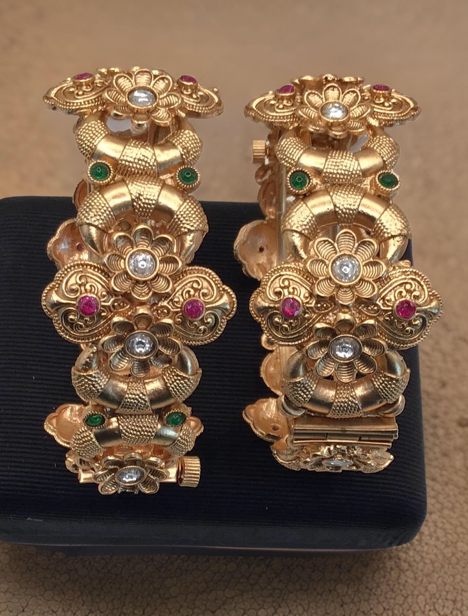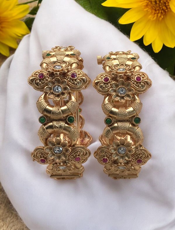 Antique Gold Finish Designer Rajwadi Kada Bangles