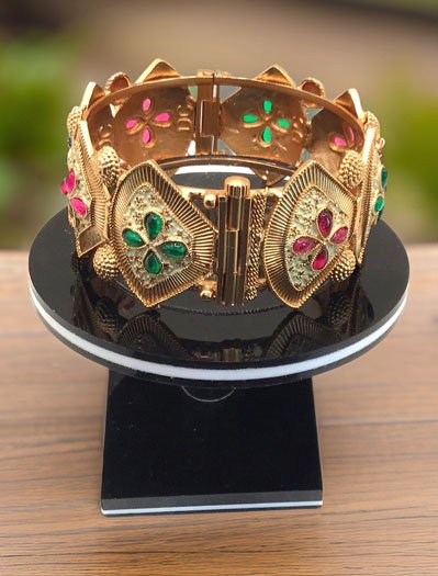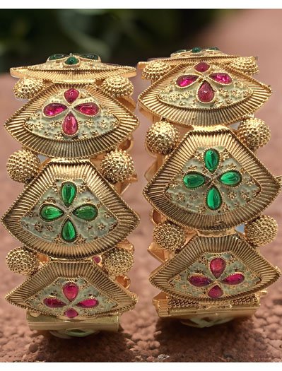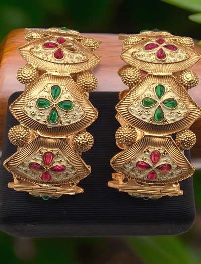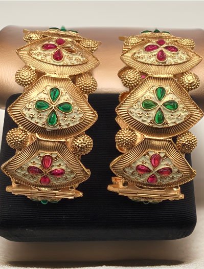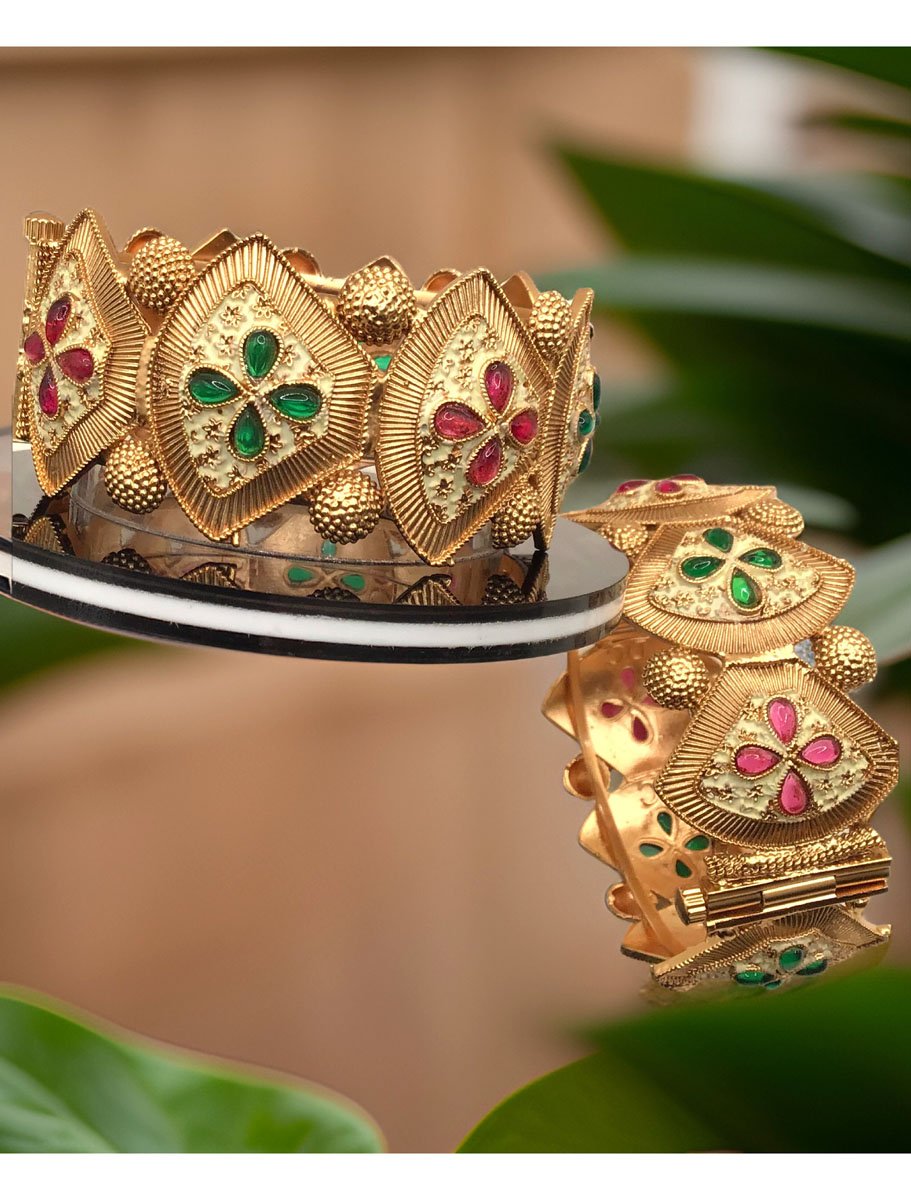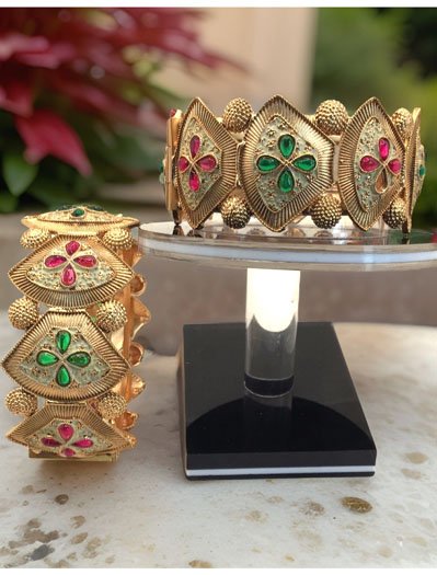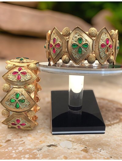 Introducing our exquisite collection of Antique Rajwadi Bangles, available in multiple sizes to suit your preference. These bangles feature intricate detailing and a vintage-inspired design, adding a touch of elegance and nostalgia to any outfit. Enhance your jewelry collection with our Gold Indian Antique Bangles and experience the beauty of Indian craftsmanship and culture.