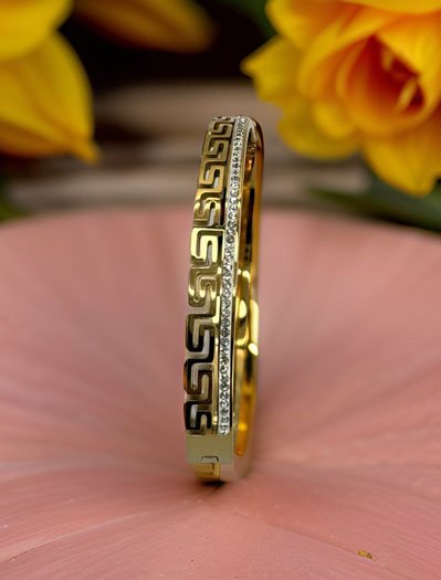 This trendy Aztec pattern carved bracelet will bring an original and fashion touch to your look. It is perfect for an evening dress or with your daily look. Carefully constructed from high-quality stainless steel and studded with shiny AAA quality CZ stones gives it an ultra feminine and modern touch that you can enjoy it for years with virtually no maintenance and no worry about sensitive skin.