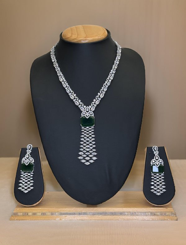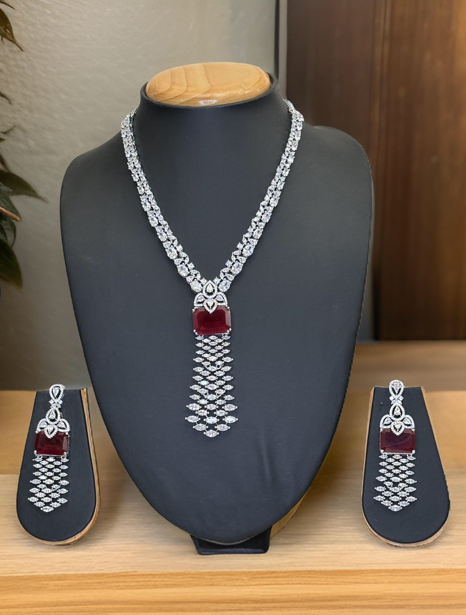 Bollywood Inspired Designer Baguettes Long AD/CZ necklace with classy earrings!