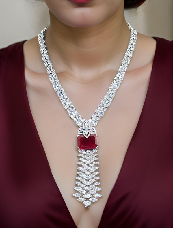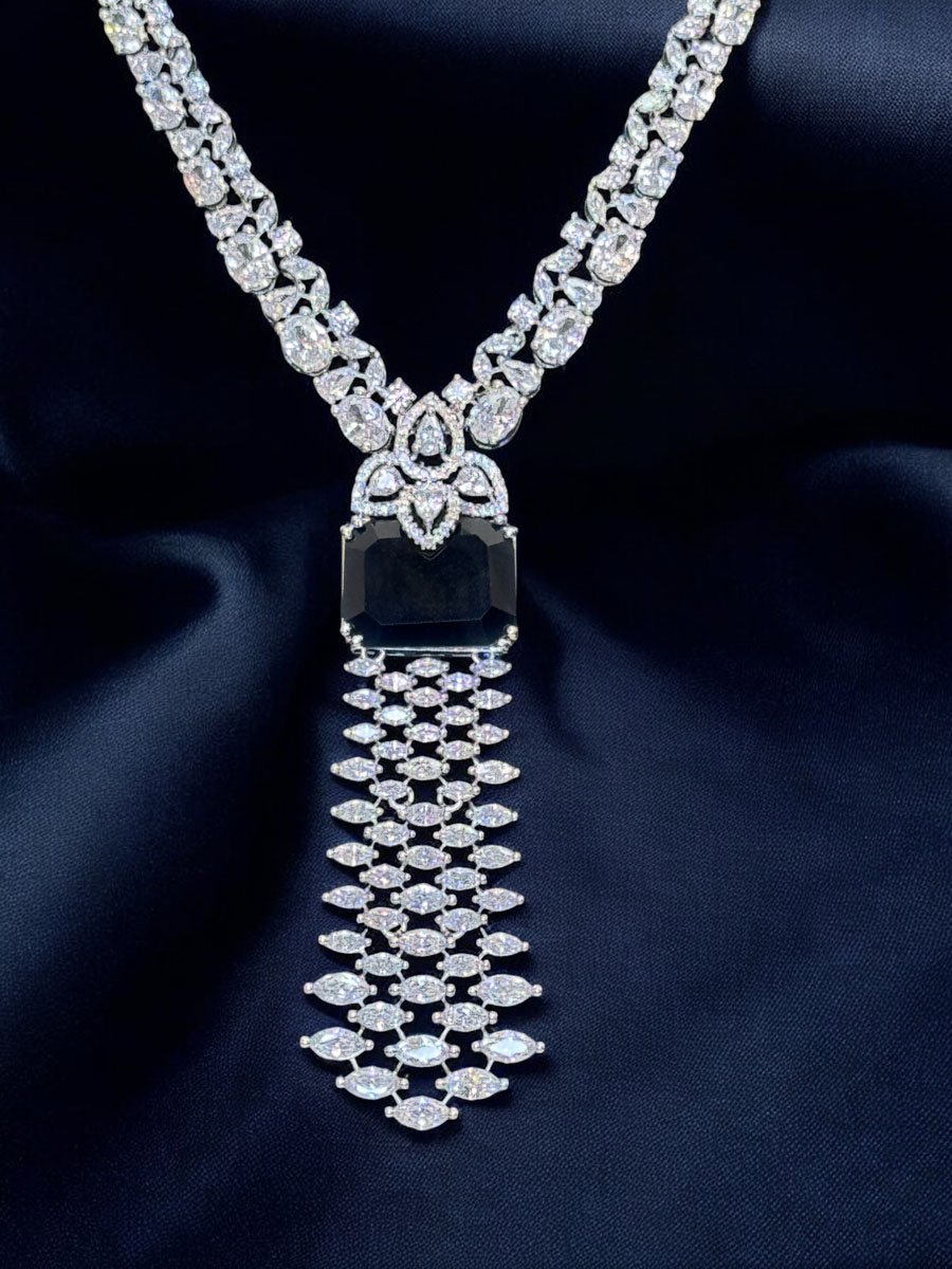 Dimension: 8" long upto AD stones and 11" w/ chain, 2.7" long pendant