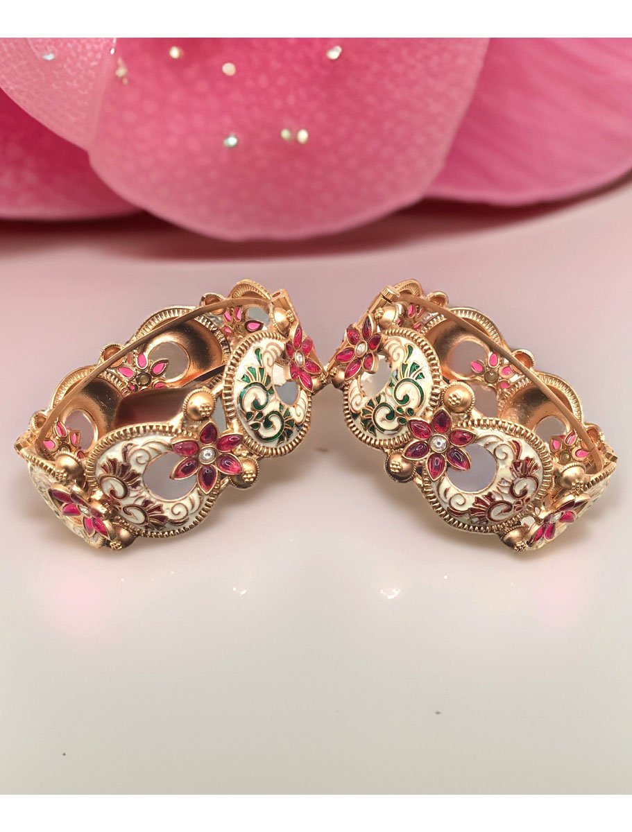 Bollywood Inspired Traditional designer Kada.These Kadas are meticulously handcrafted by skilled artisans, ensuring a truly unique and traditional design.These uniquely design bangles are a timeless accessory, suitable for both traditional occasions and contemporary fashion statements. Stand out from the crowd with these bold and eye-catching bangles, which effortlessly enhance your personal style.
