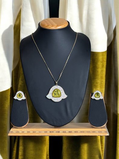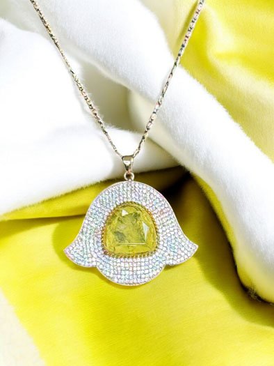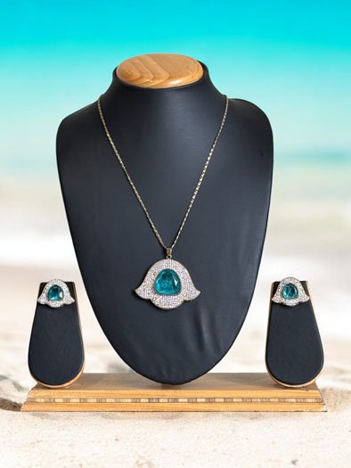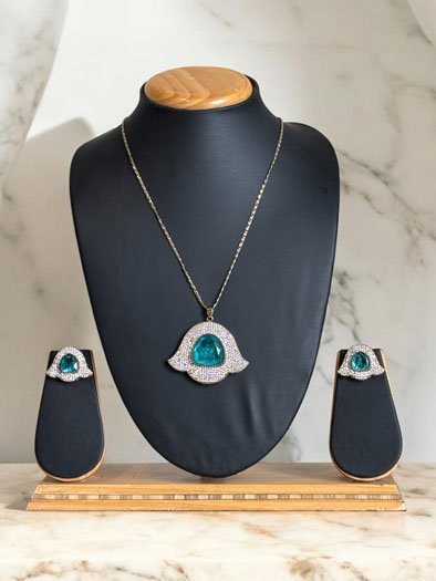 Elevate your style with our exquisite Bell Shaped American Diamond CZ Stones Pendant Set, a true embodiment of elegance and sophistication. Crafted with precision and attention to detail, this stunning jewelry piece is designed to capture the essence of timeless beauty. Centered with a stunning American Diamond surrounded with AAA Quality white CZ stones. Each shimmering CZ stone is expertly cut and set to mimic the brilliance of genuine diamonds, making it a captivating accessory for any occasion.