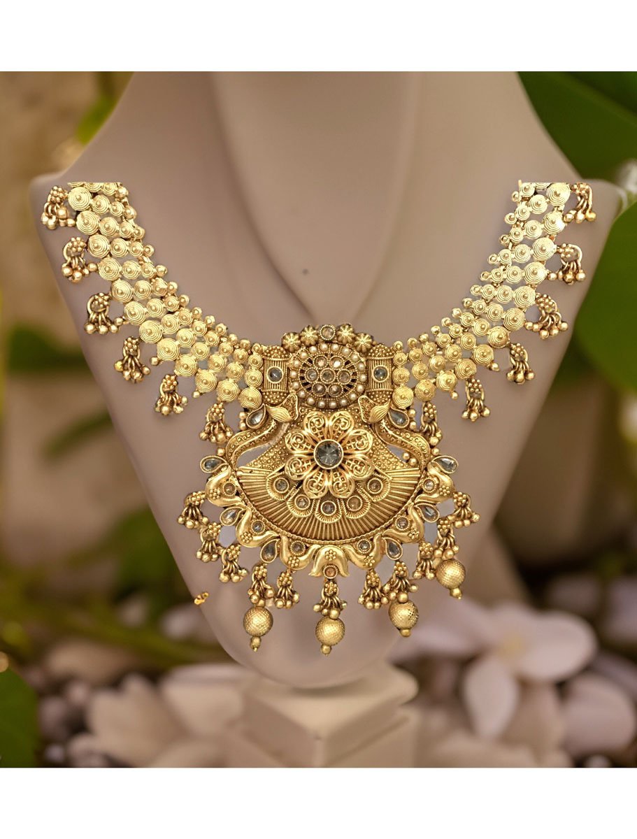 Antique 22carat Gold Finish Cluster Golden Pearls Rajwadi Rani Haar