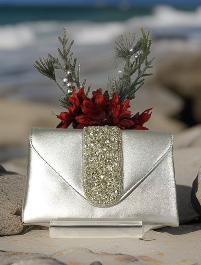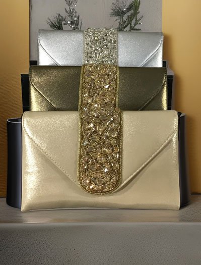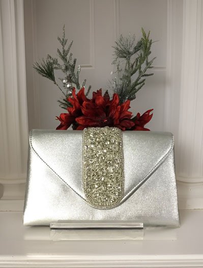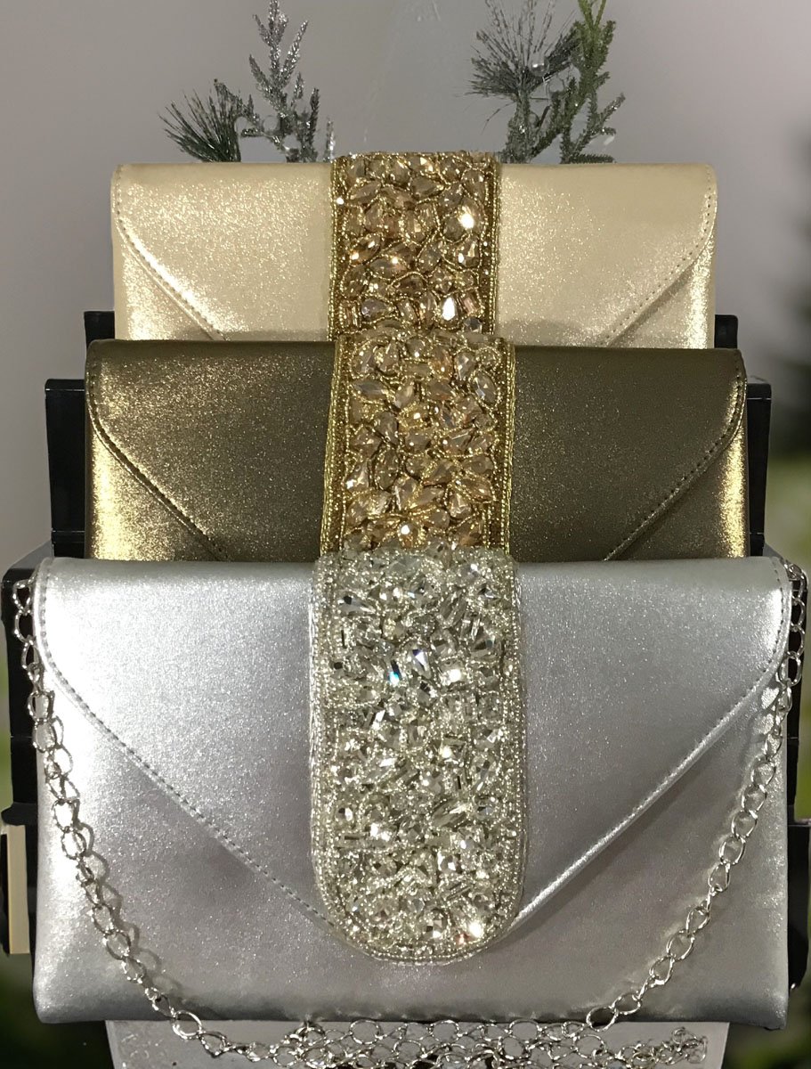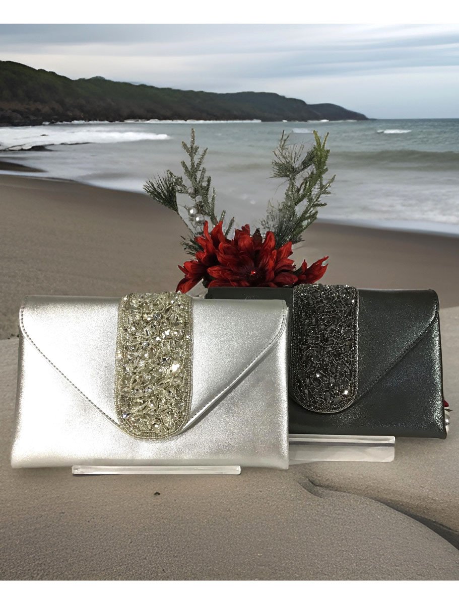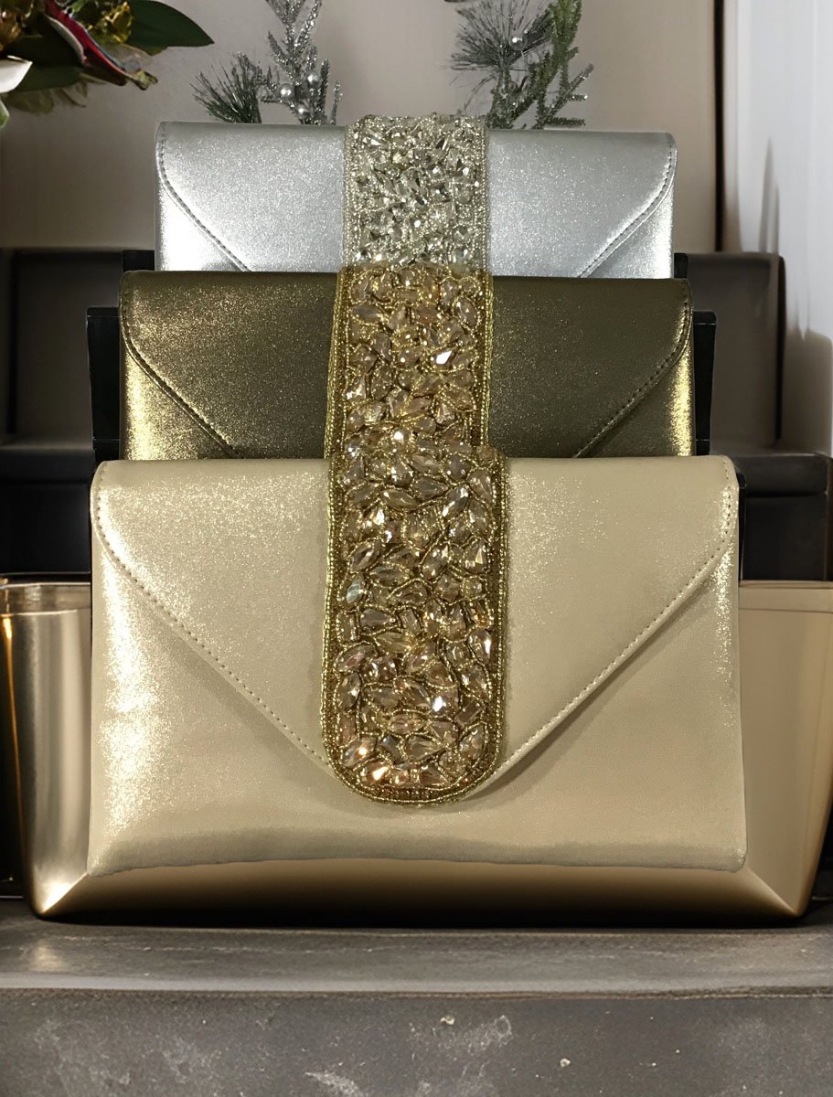 Crystal Embellished Metallic Leather Envelope Clutch Purses