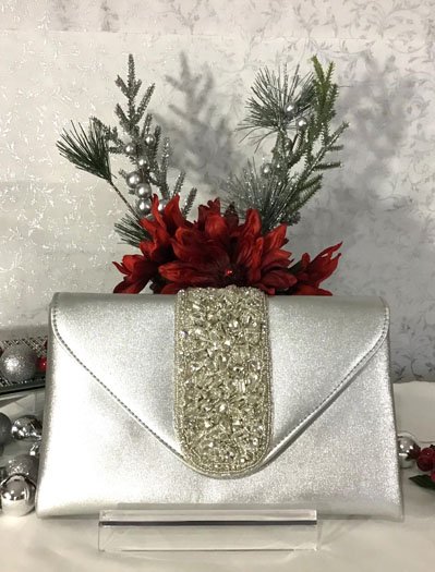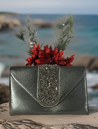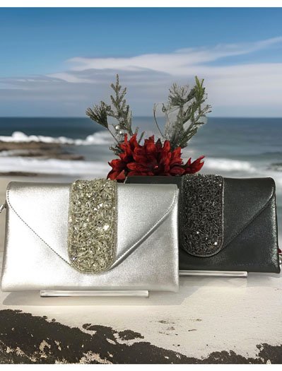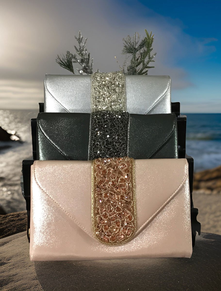 Introducing our exquisite Handmade Crystal Evening Clutch, hand crafted by skilled artisans, ensuring the utmost attention to detail and quality. Metallic Learther purse is adorned with shimmering crystals that catch the light with every movement, this clutch adds a touch of glamour to your outfit. This is a Perfect Size to hold your essentials – from keys, makeup to your phone – it strikes the perfect balance between style and functionality. Available in Metallic Silver, Black, Brown, Pink and Golden colors.