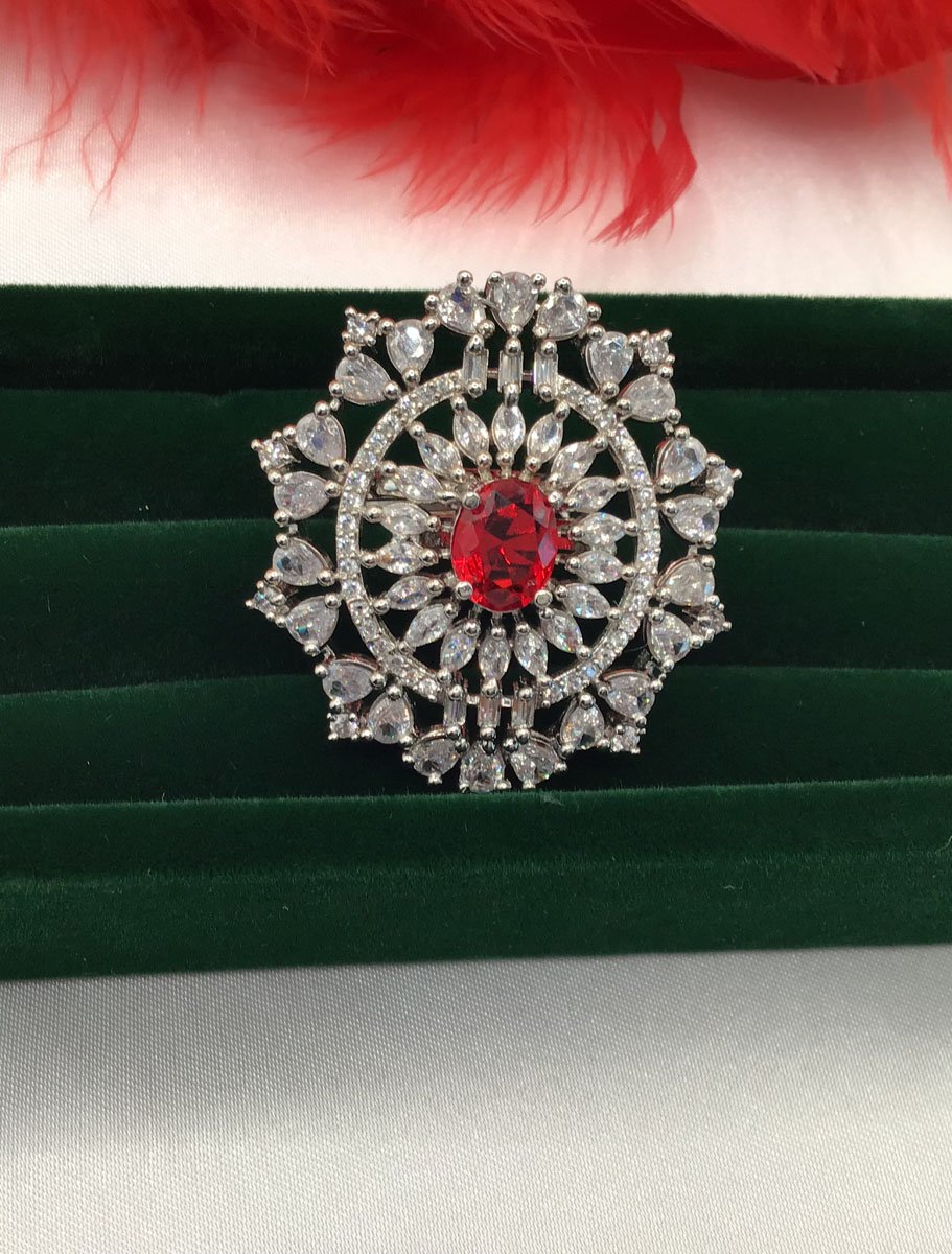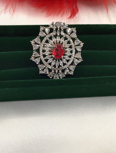 Made in silver with Ruby AD stone in the center and white CZ stones in the surroundings. Looks gorgeous upon wearing.
