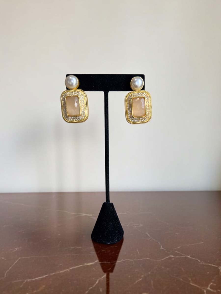 Experience the captivating beauty of iridescent Mother of Pearls with this elegant necklace set featuring Pearls with Mint colored stones arranged in a leaf design and a stunning Agate stone pendant surrounded with shiny micro CZ stones. This handcrafted, gold plated designer set is one of a kind and perfect for those who appreciate unique pieces. It comes with matching earrings and is perfect to pair it up with Party, Festive or Summer outfits!