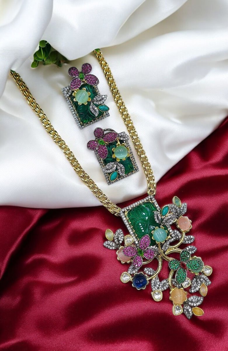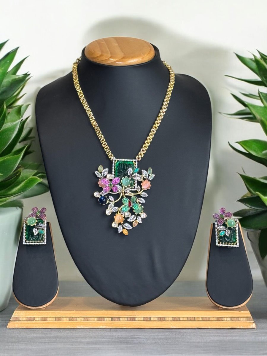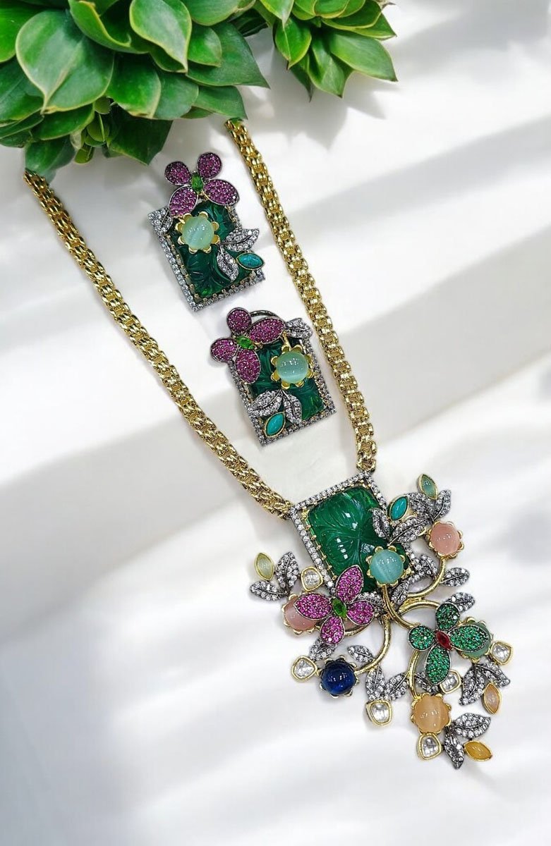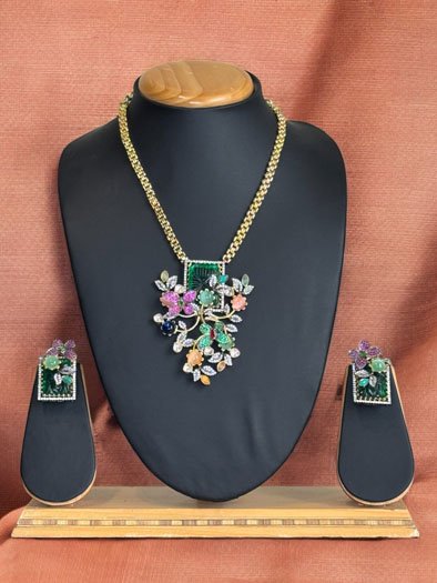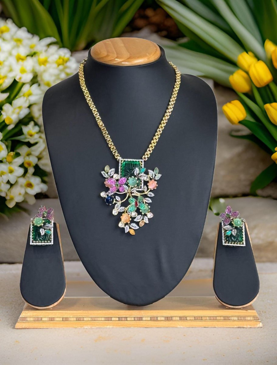Elegant Sabyasachi Inspired Multi Stone Pendant Set