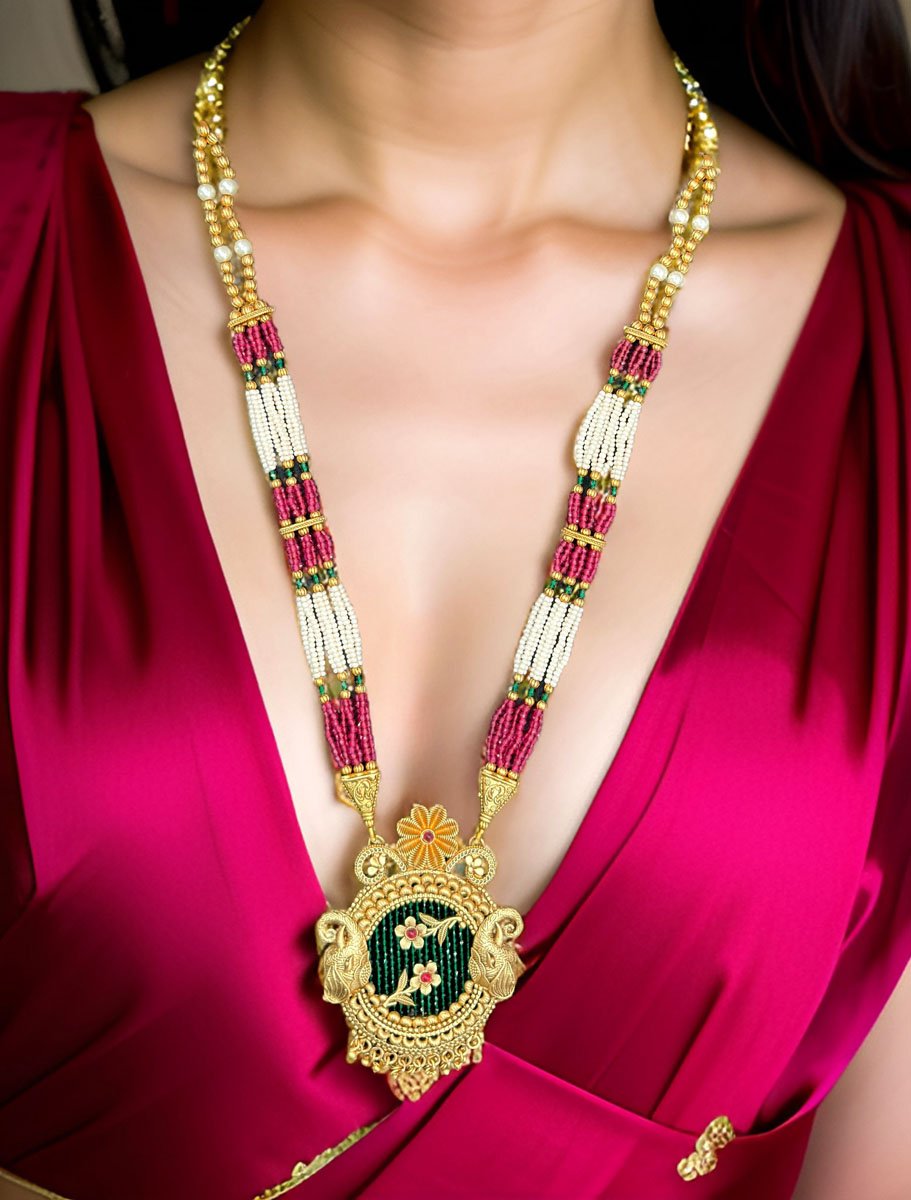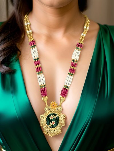"Polki Set with Emerald Elephant pendant and matching earrings