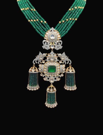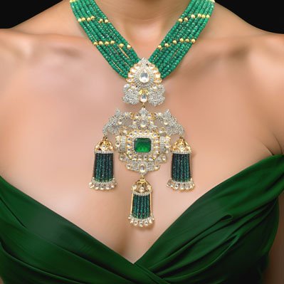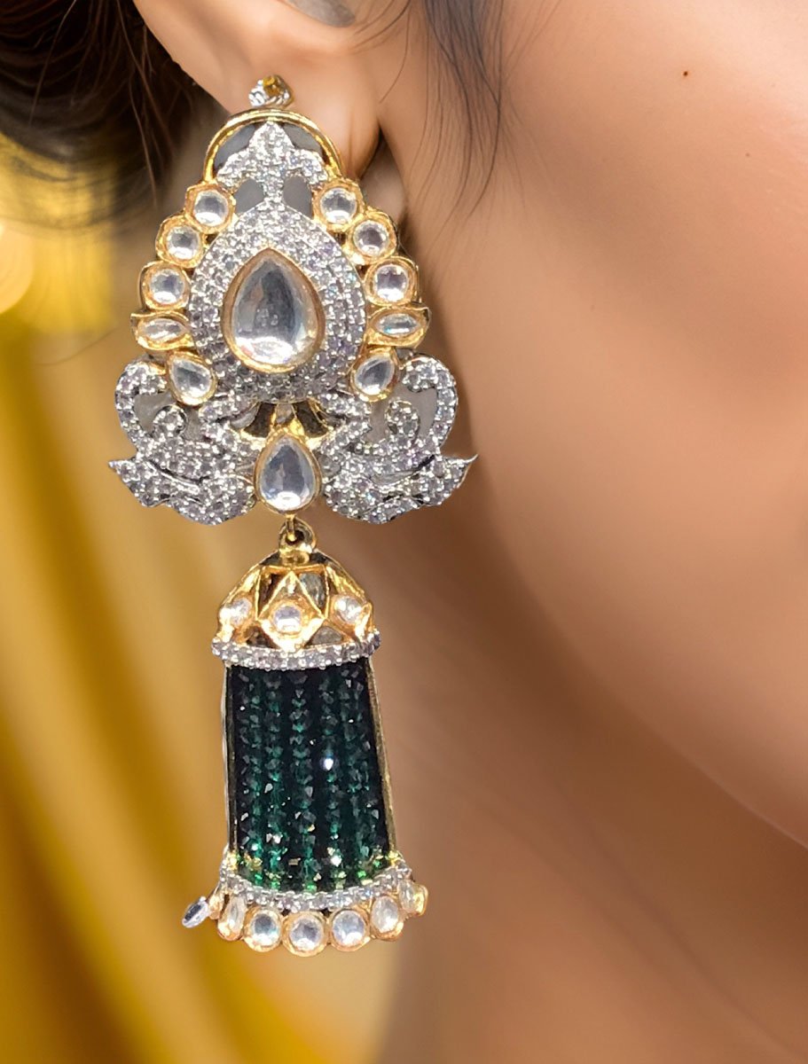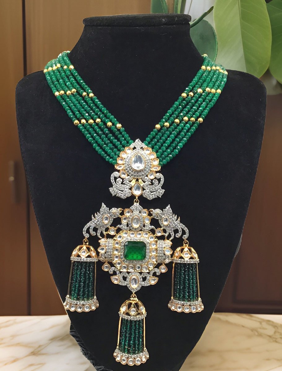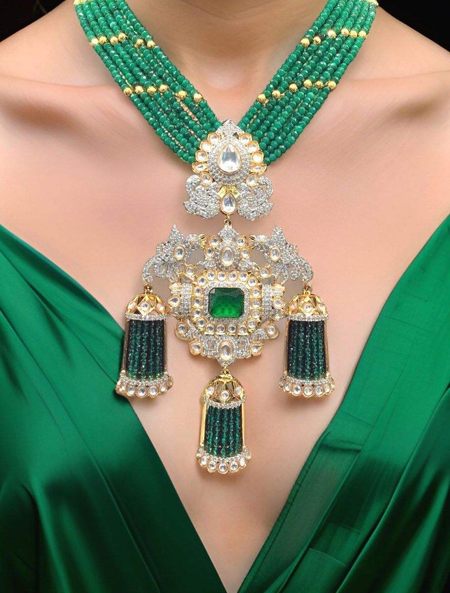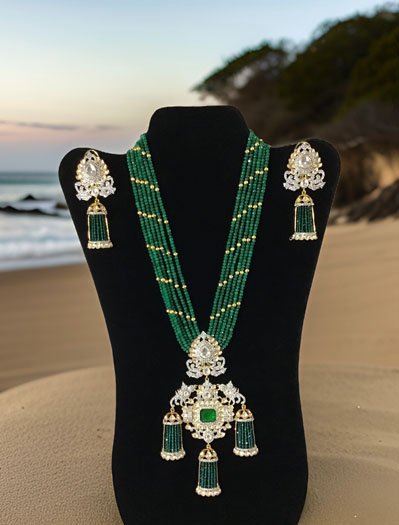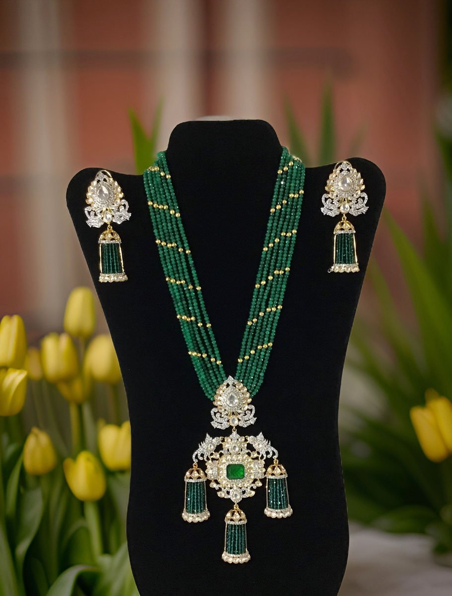Gorgeous Long Emerald CZ Necklace with matching stud earrings