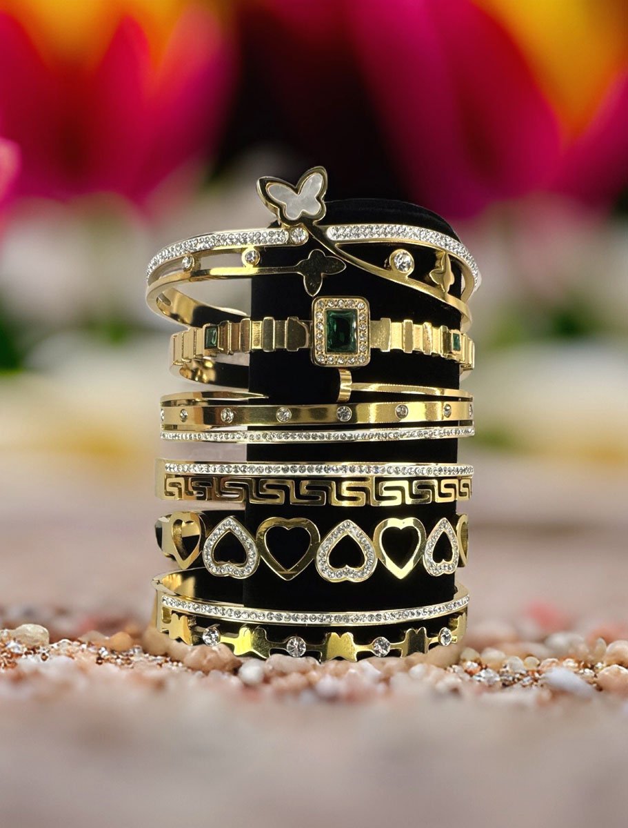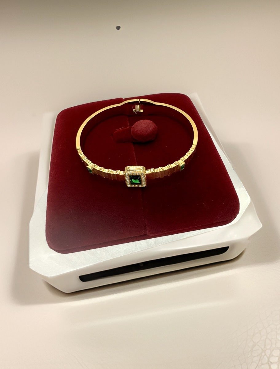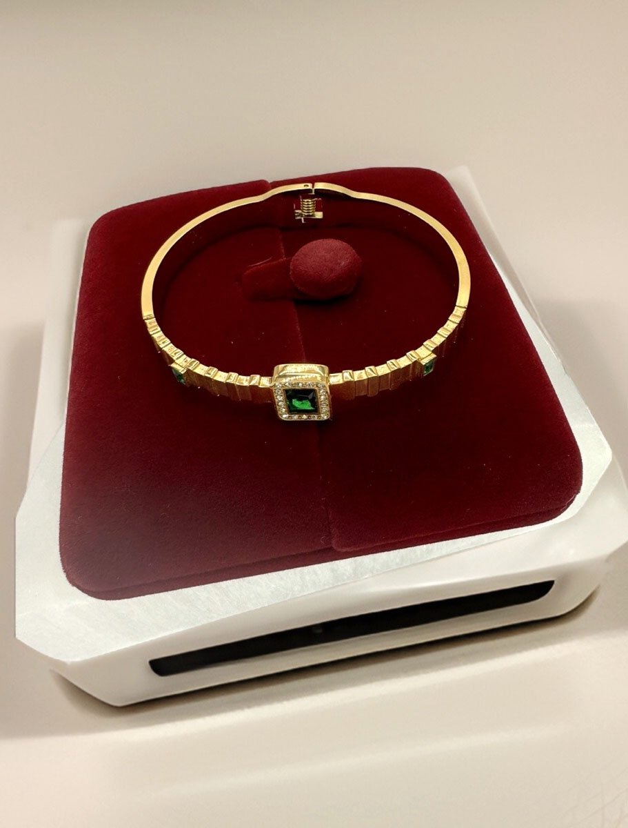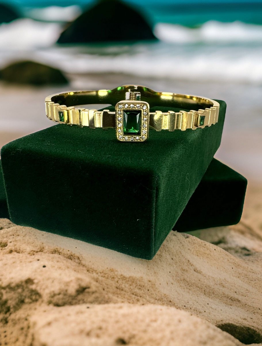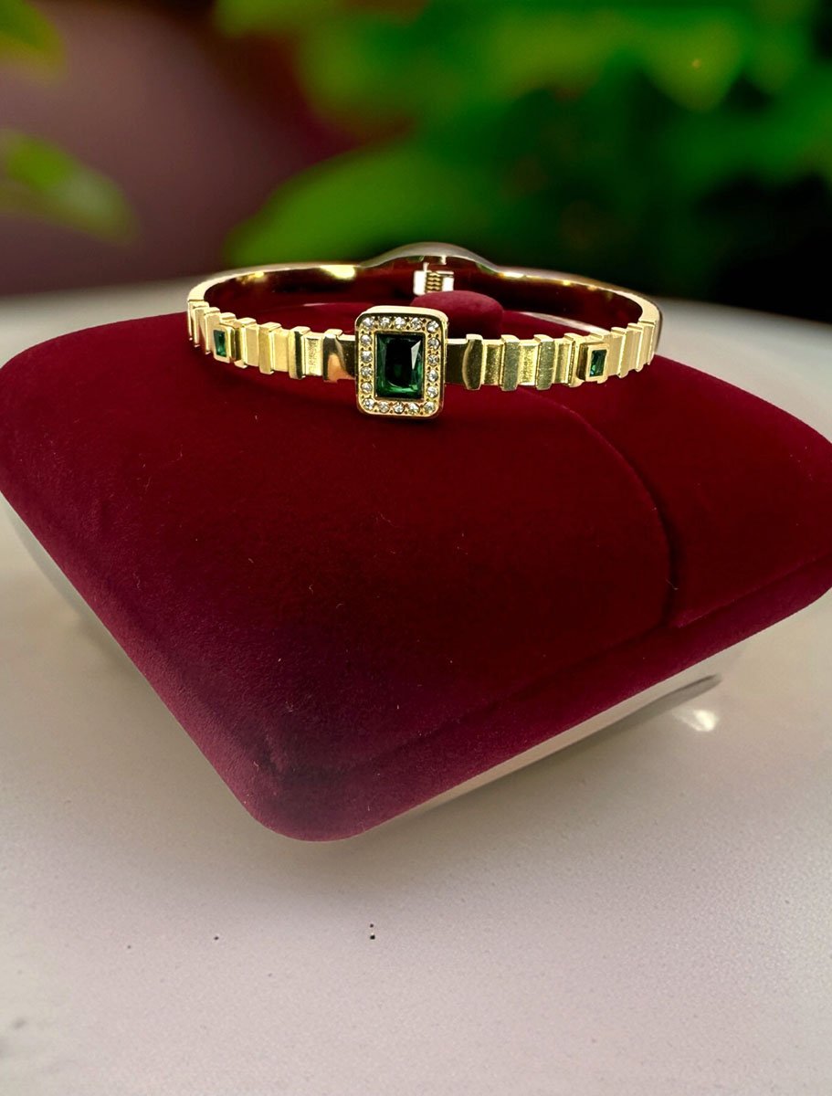 An elegant Emerald Solitaire 18k gold plated bracelet needs no introduction! Hand crafted for the modern age, quintessential, goddess that walk’s the earth. Enhancing mood, beauty & confidence. Superior quality product made as per International Standards. Toxic free materials like Hypo-allergenic steel posts, steel clasps & precious metal plating that are safe for the skin.