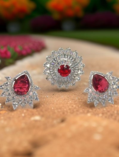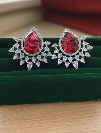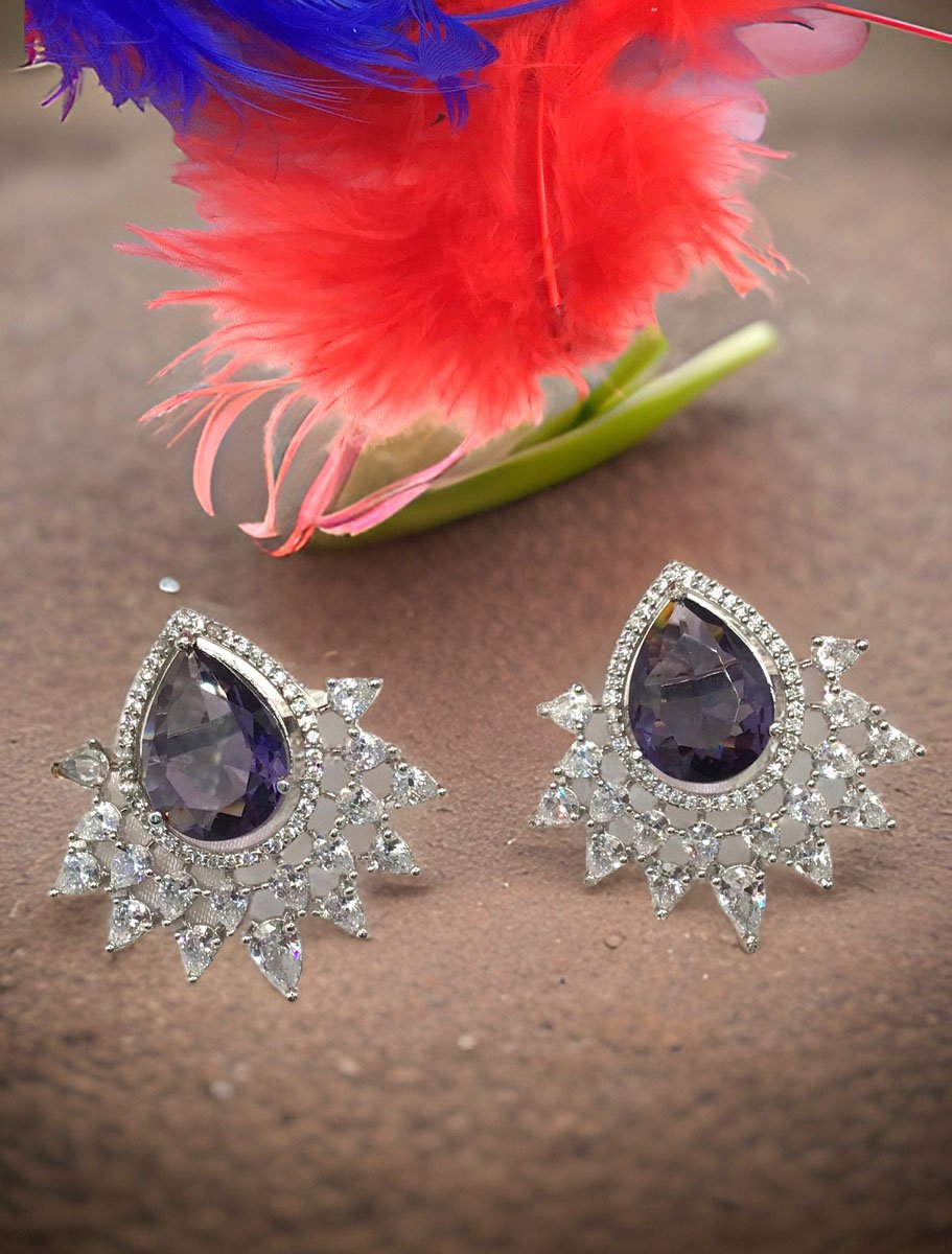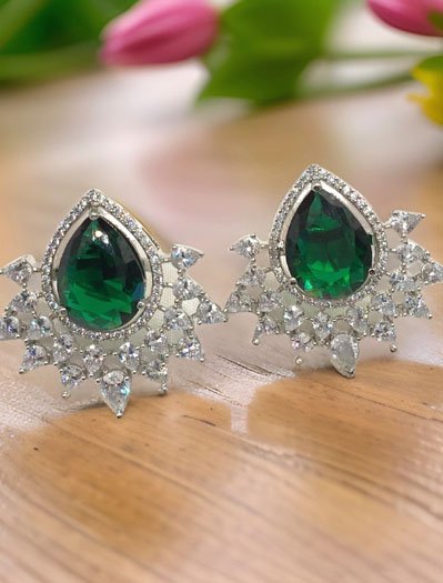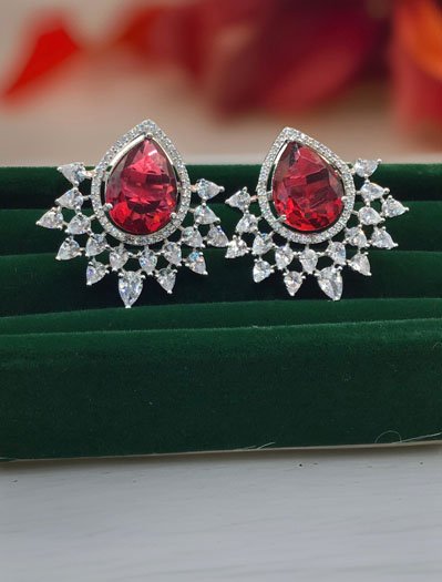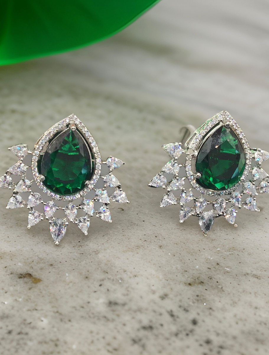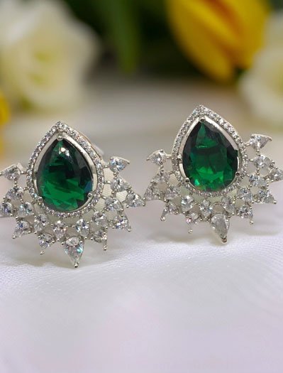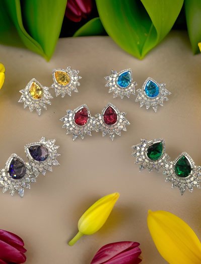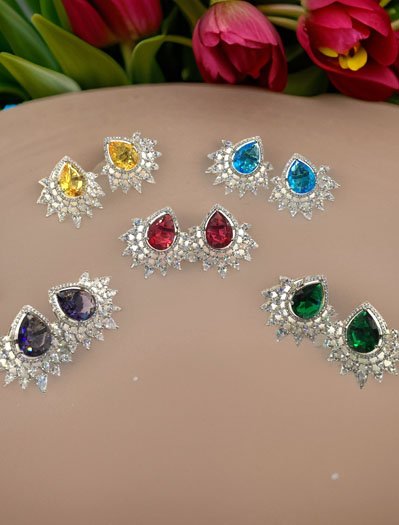 Elevate your style with these fashionable AD/CZ earring tops made in silver. They feature a central AD stone surrounded by white CZ stones and are available in Ruby, Emerald Green, Sapphire, Yellow and Neon Blue colors. Perfect for party wear. Dazzle on any occasion with these exquisite earring tops.