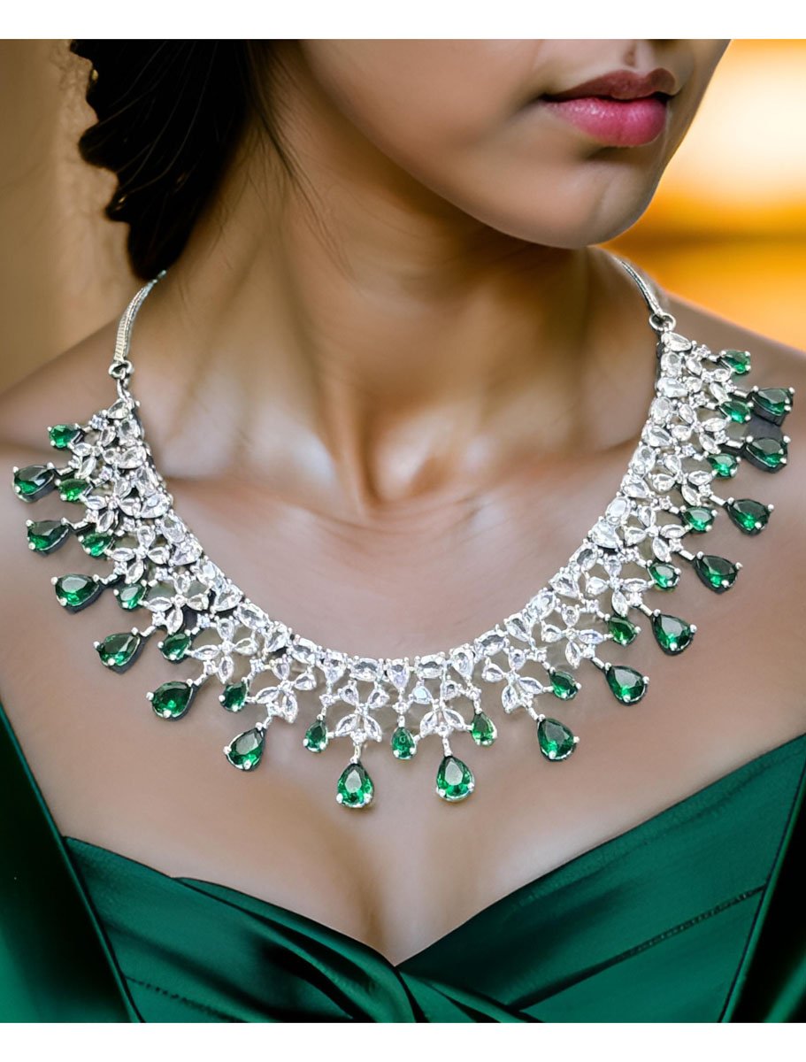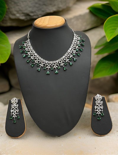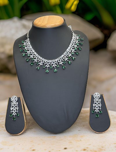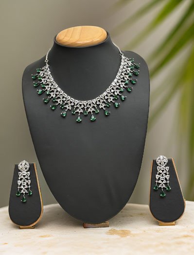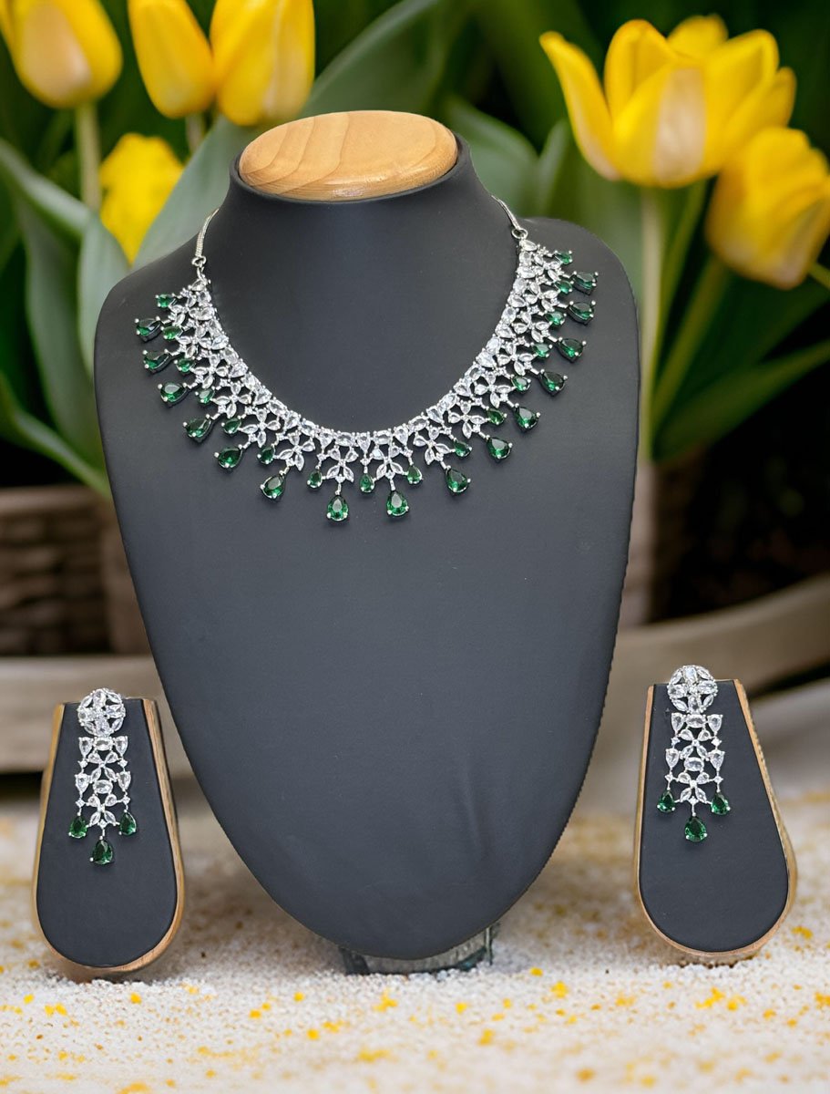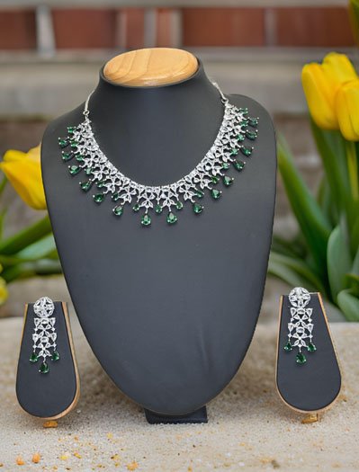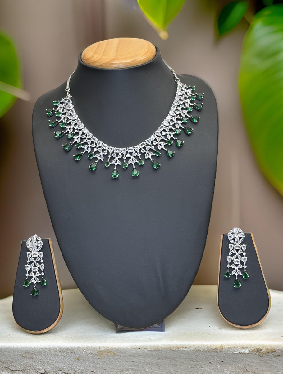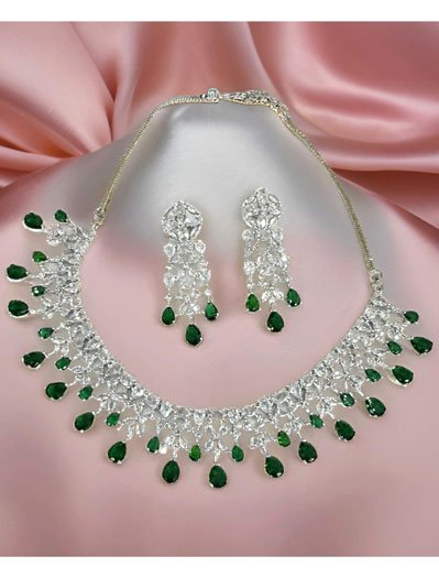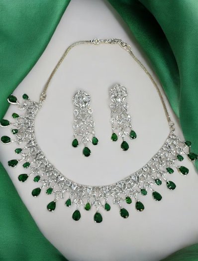 Fine Quality AD/CZ Emerald Green stones necklace set