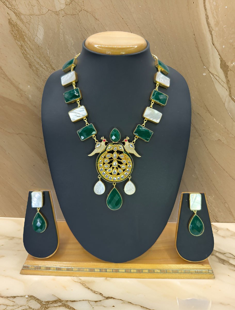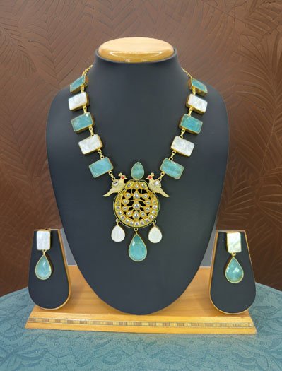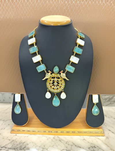 Flat Shaped Mother of Pearls Designer Necklace Set