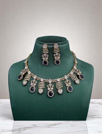 Elevate your allure with this opulent celebrity inspired masterpiece adorned with Premium Quality American Diamond and CZ stones. This latest trendy necklace is a must-have piece for any sophisticated woman looking to enhance their fashion accessories collection. This necklace and drop earrings features with Premium Quality American Diamond and Beautiful, shiny AAA quality CZ stones, making it the perfect addition for any festive, formal occasion. The necklace is beautifully crafted with intricate details that add a touch of elegance to any outfit.The drop earrings are the perfect complement to this stunning necklace. This will be a perfect choice for those looking for an elegant, delicate piece of jewelry to stand out of the crowd!!