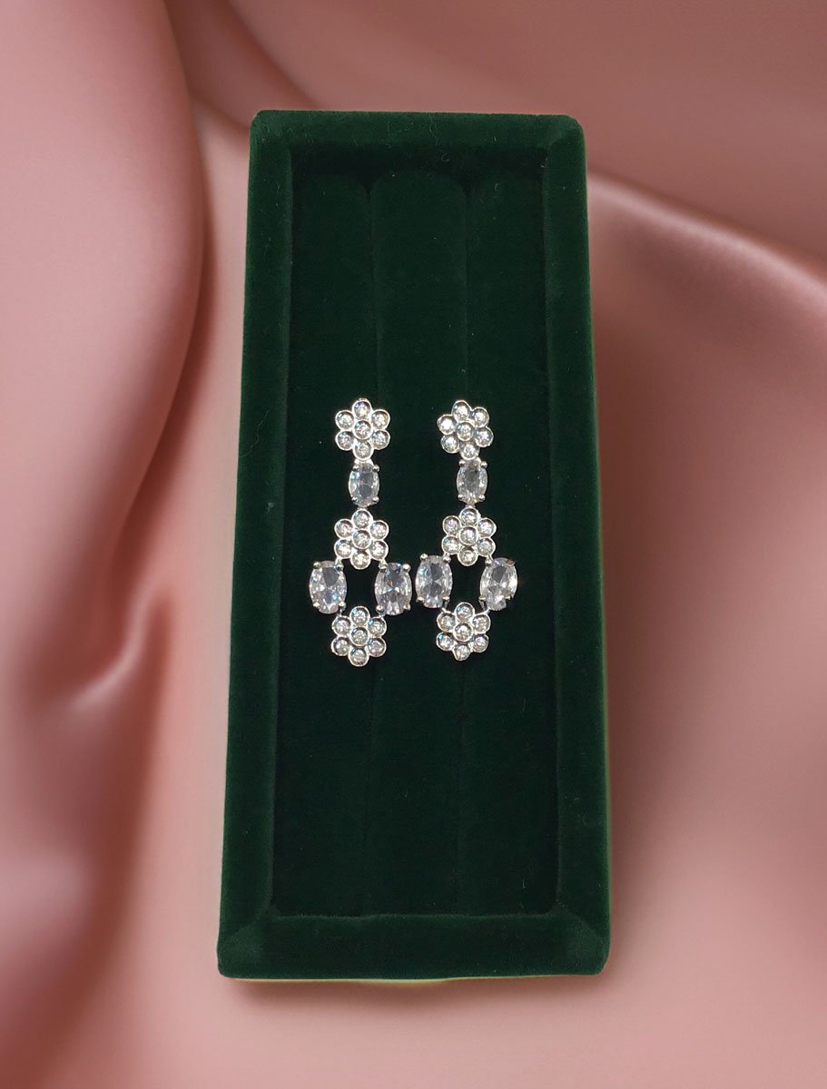 Gorgeous CZ sparkly lab diamond stones Earrings in Rhodium plating