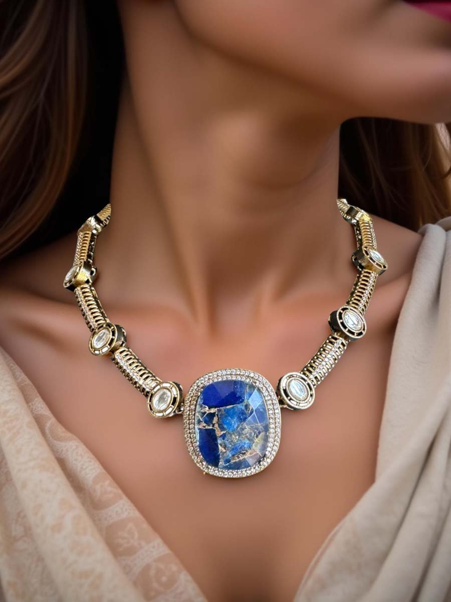 Elevate your Jewelry collection with this Exquisite Antique Gold Uncut Polki Kundan Hasli set inspired by the essence of Amarpali and crafted with Doublet Stone and Kundan accents. This stunning choker Necklace exudes timeless elegance, making it the perfect choice for Indian Bollywood-inspired Glamorous look. A gorgeous Hasli Set paired with matching big light weighted dangler earrings, is an exquisite and versatile jewelry set that can complement a wide range of outfits. Upgrade your accessory collection with this show-stopping Necklace that will surely turn heads wherever you go!!