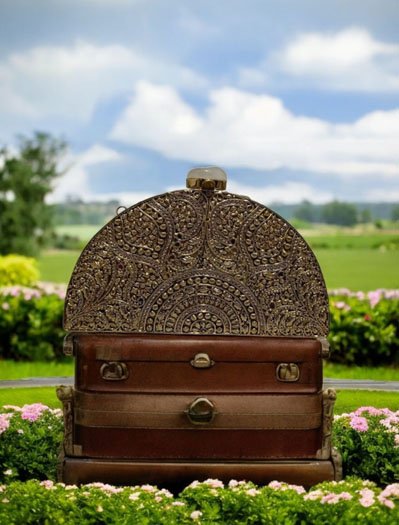 Half Moon Matt Gold Carved MOP Clutch Bag
