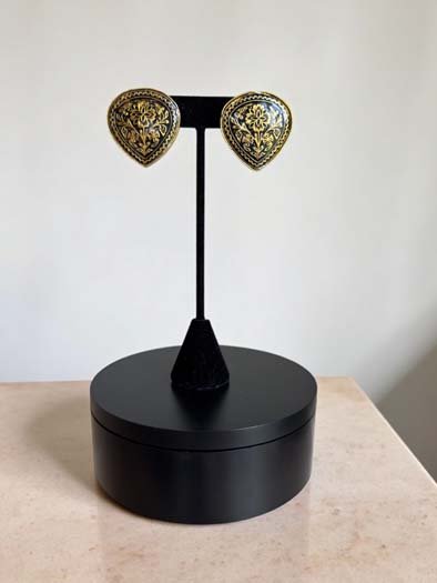 Earrings: 1.4" x 1.4". Maangtikka: 7" long, 1.2" x 1.2" Tikka Pendant