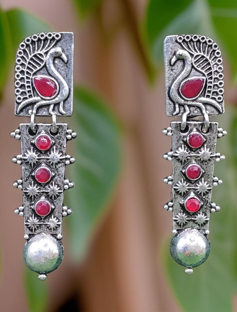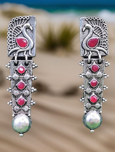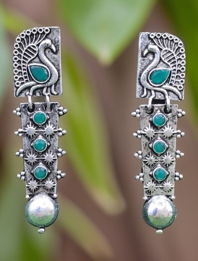 Hand carved Germal silver earrings with an oxidized polish. These Earrings have an excellent finish and gives out an exquisite sense of bohemian style. Perfect for casual parties and for daily wear!