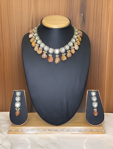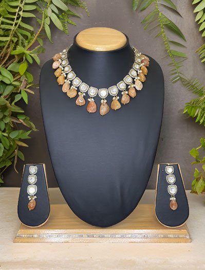 Premium Quality Kundan Necklace Set with Golden Turkish Beads