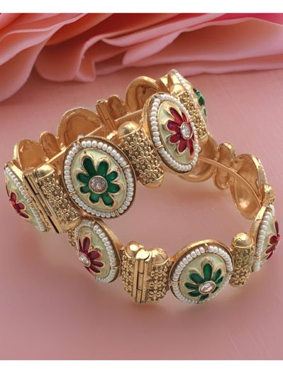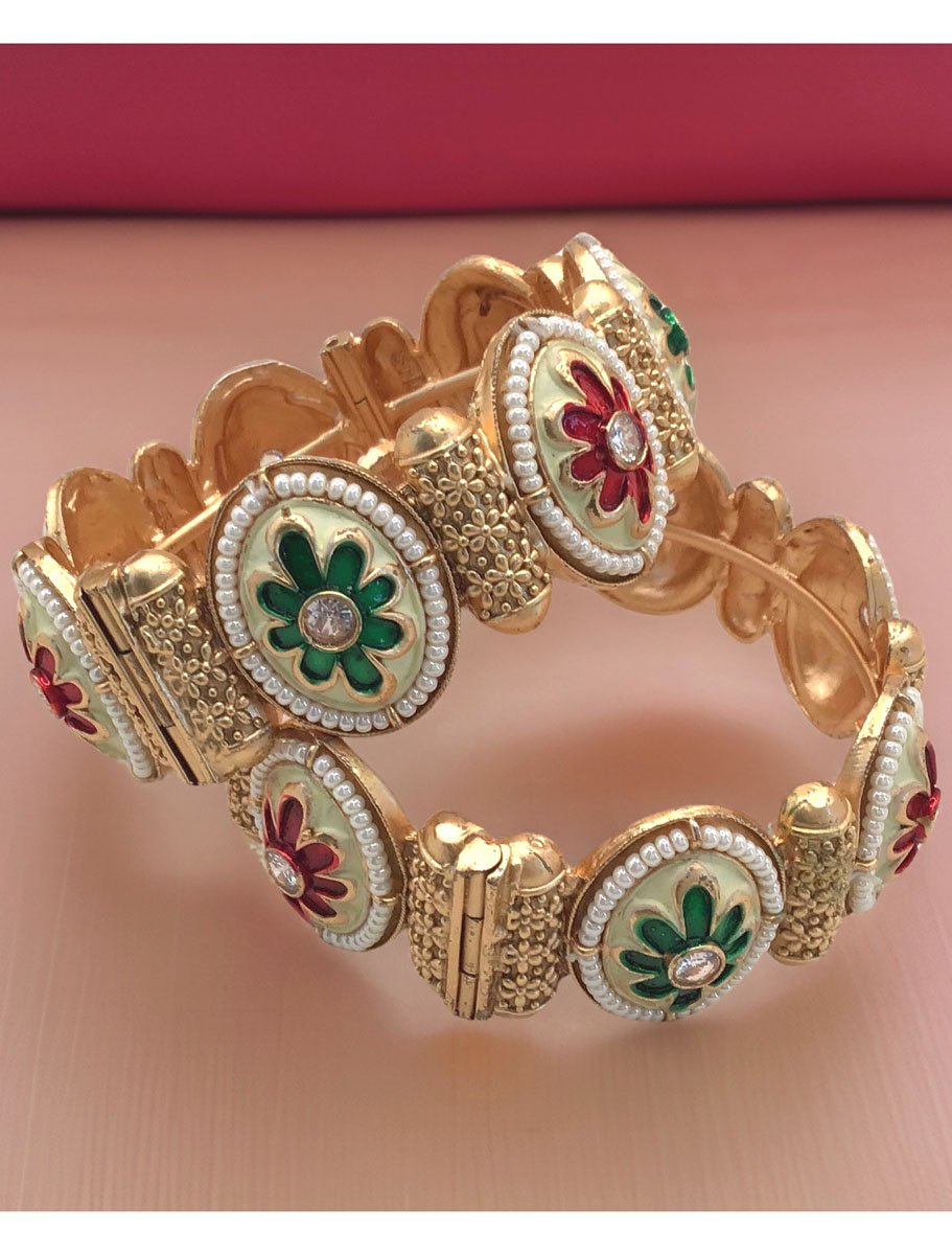 Matt Gold Finish Rajwadi Meenakari Bangles